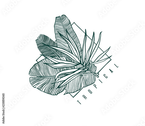 Icon With Palm And Banana Leaf Outline Drawing Of Tropical Leaves Nature Label With Exotic Foliage Vector Illustration Buy This Stock Vector And Explore Similar Vectors At Adobe Stock Adobe Stock